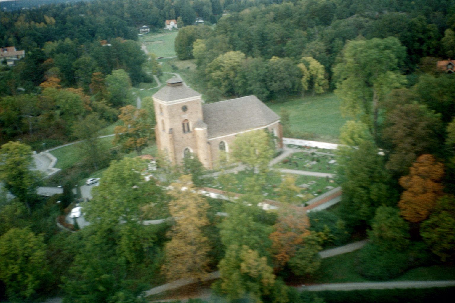 20041002 Tyresö kyrka på väg att landa Slottsviken