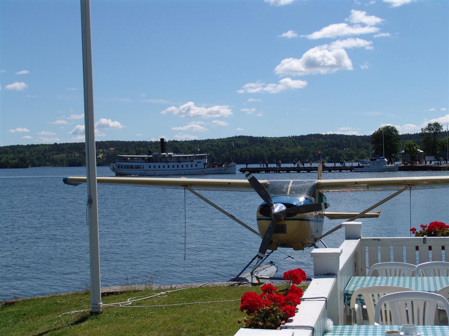 20050911 Lunch Mariefred och flygplanet i närheten perfekt!