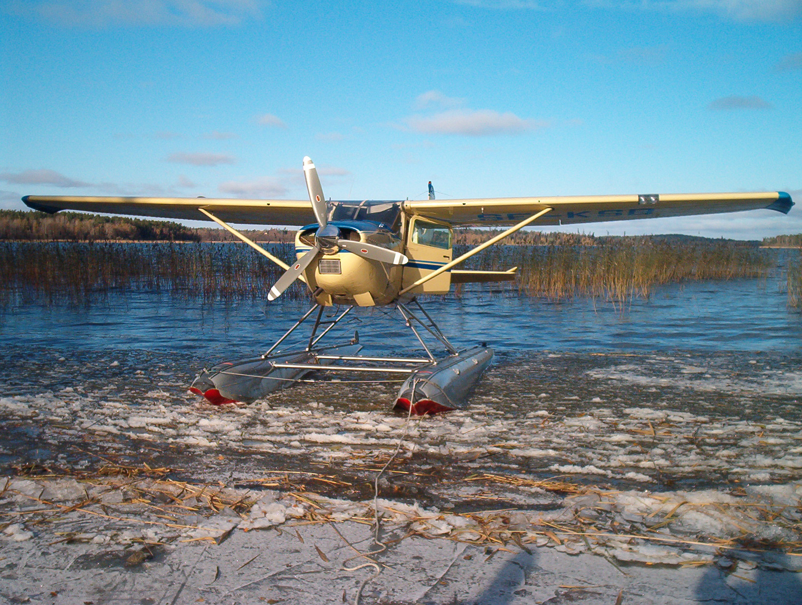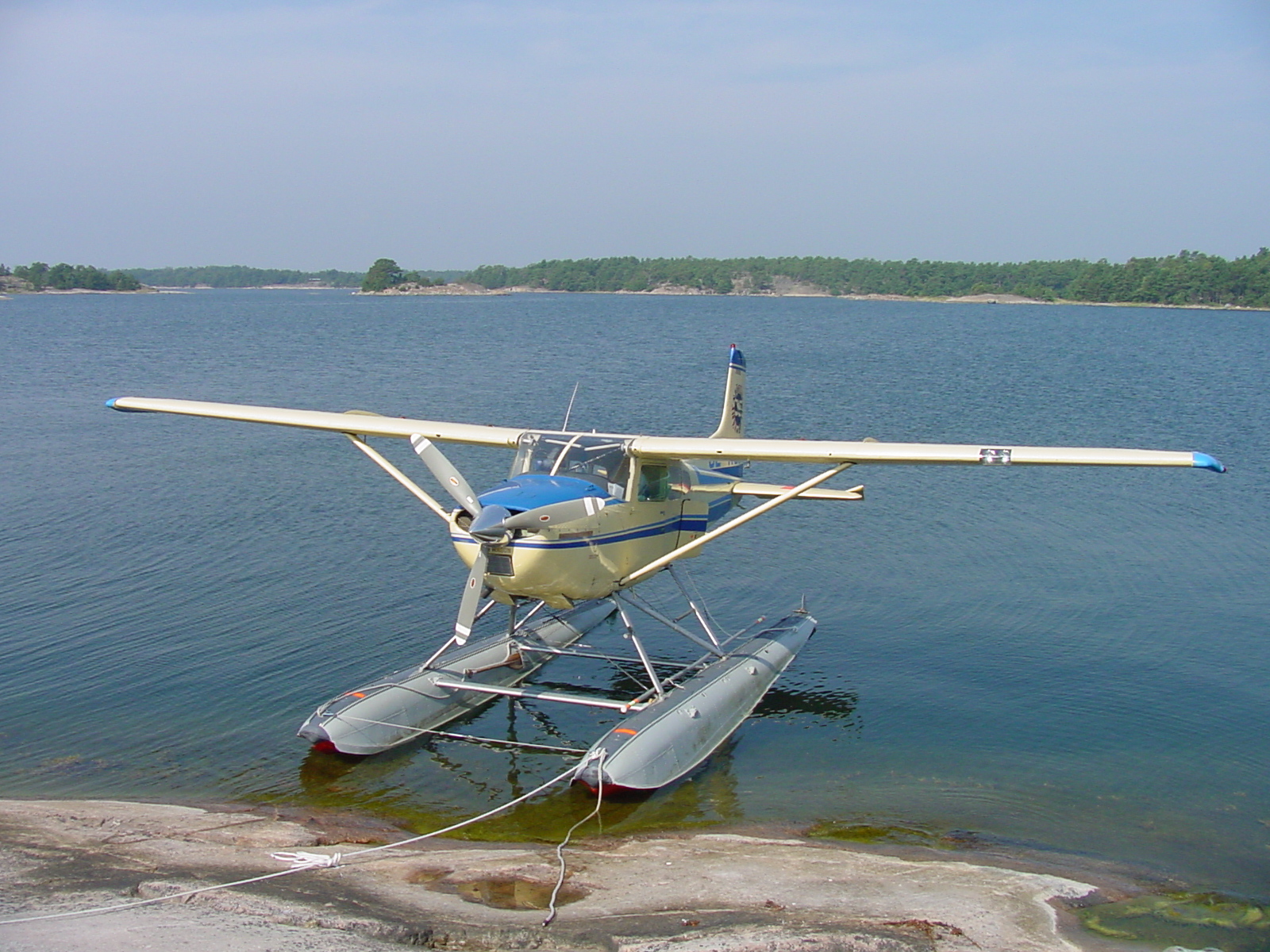 20040815 Jag flyger upp 206:an till Umeå för montering av pontoner
